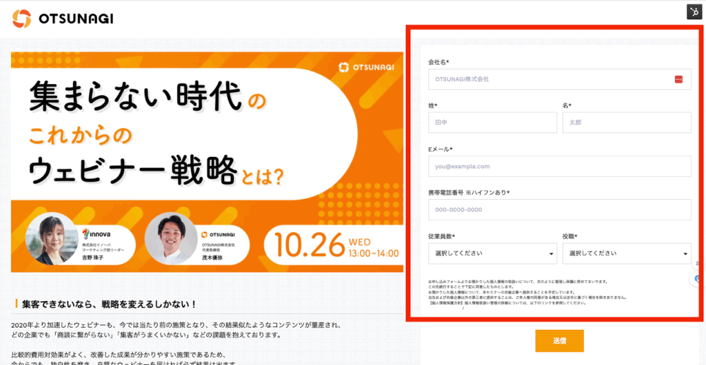 また、フォームの記入を促すのではなく、参加表明をいただいた方は、代わりにフォームを入力すると言う方法もあります。