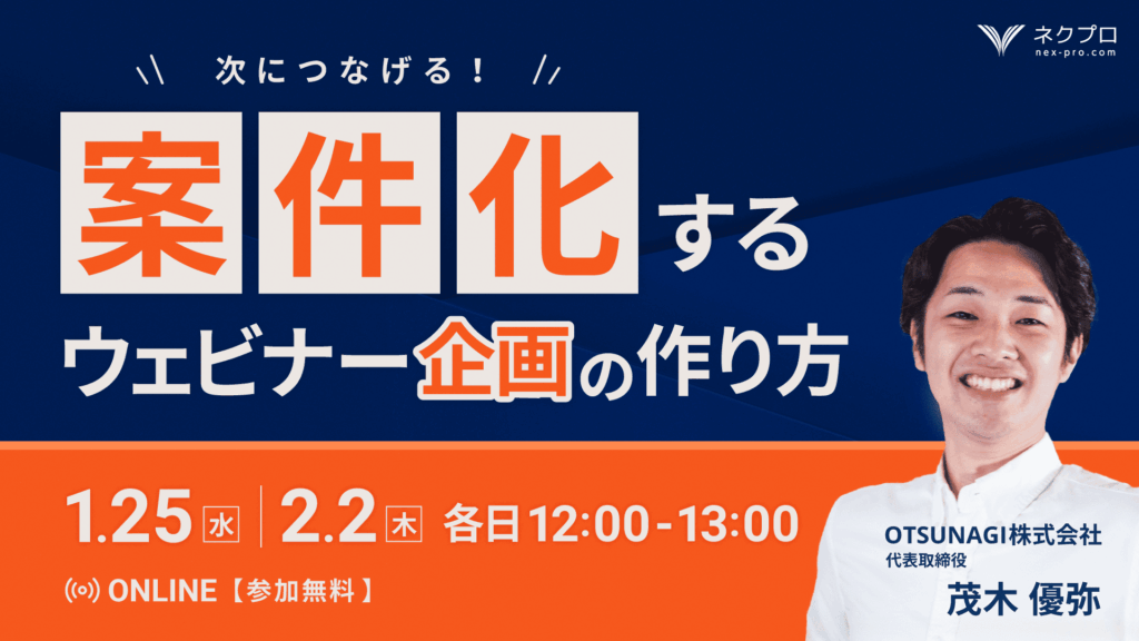 録画配信では、「案件化するウェビナー企画の作り方」という原理原則に根ざしたテーマを選定し、いつ視聴しても価値が変質しない普遍性を重視しました。