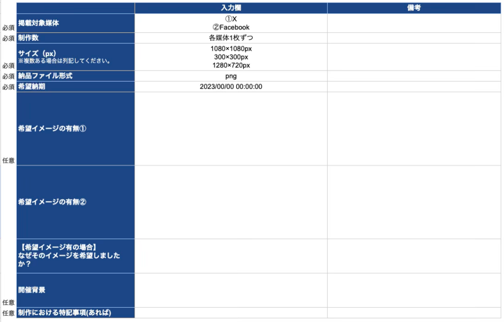 特に制作意図や背景の説明は重要です。どこを強調したいかが伝わらないと、方向性の異なる案が仕上がります。