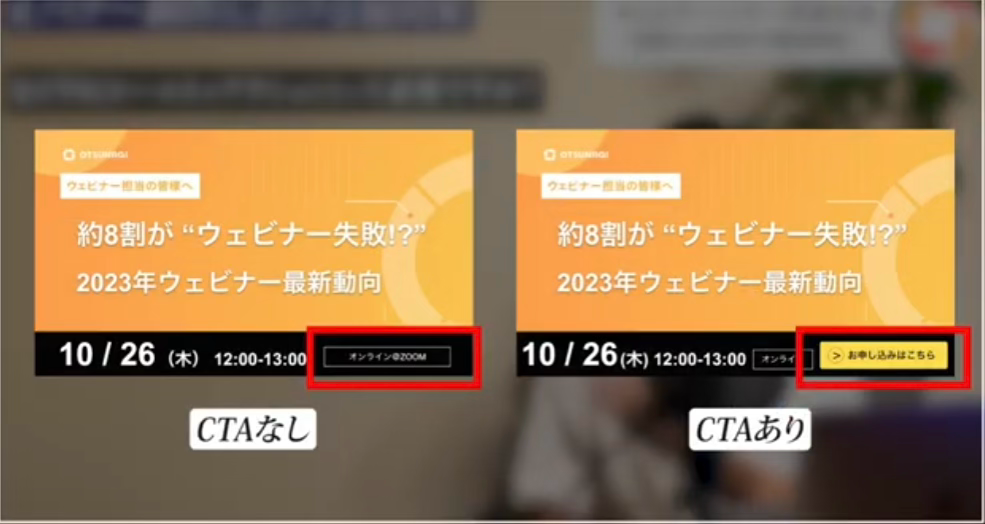 ウェビナーの集客力は、バナーの完成度に大きく左右されます。タイトルや企画がよくても、バナーがいまいちだと集客数もいまいちになってしまうケースがよくあります。