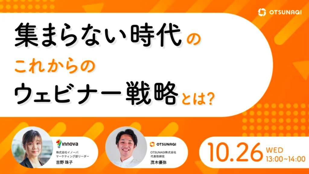 「社内にリソースがない」「企画が思いつかない」「共催先が見つからない」といったお悩みをお持ちの方は、ぜひOTSUNAGIにご相談ください。貴社の強みを引き出し、ウェビナーを起点とした“商談につながる仕組みづくり”を全力でサポートいたします。