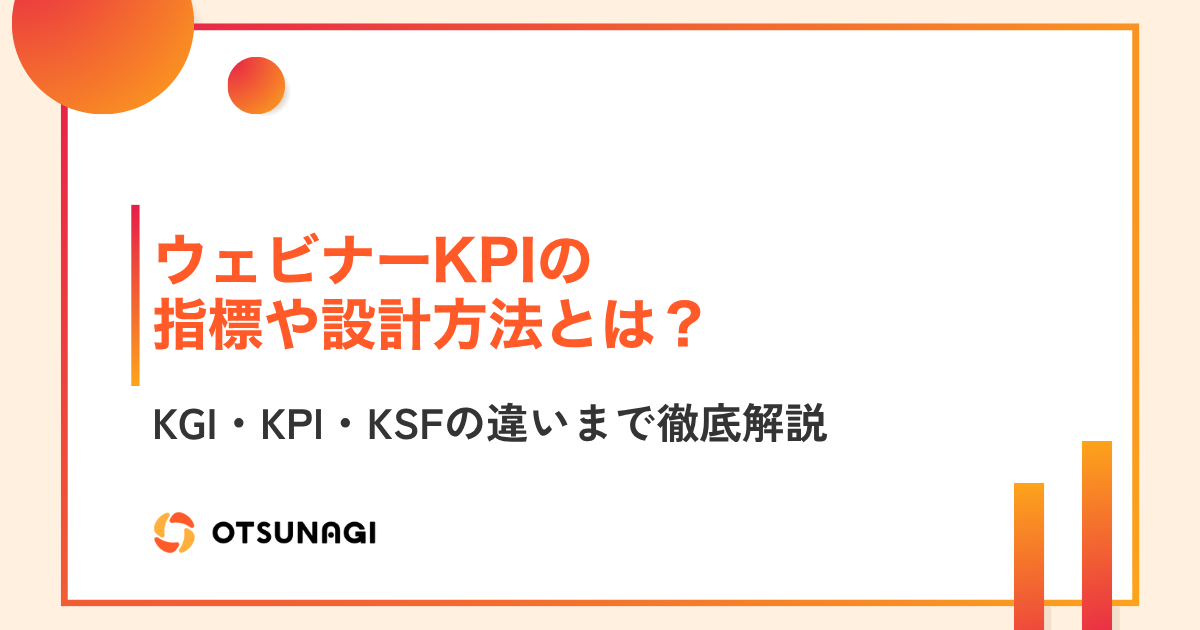 KPI(Key Performance Indicator)とは、設定したビジネス目標(KGI)を達成するために追うべき中間的な数値指標です。ウェビナーでは、例えば「参加率50%」「資料DL数80件」「商談化率10%」などがKPIとなります。