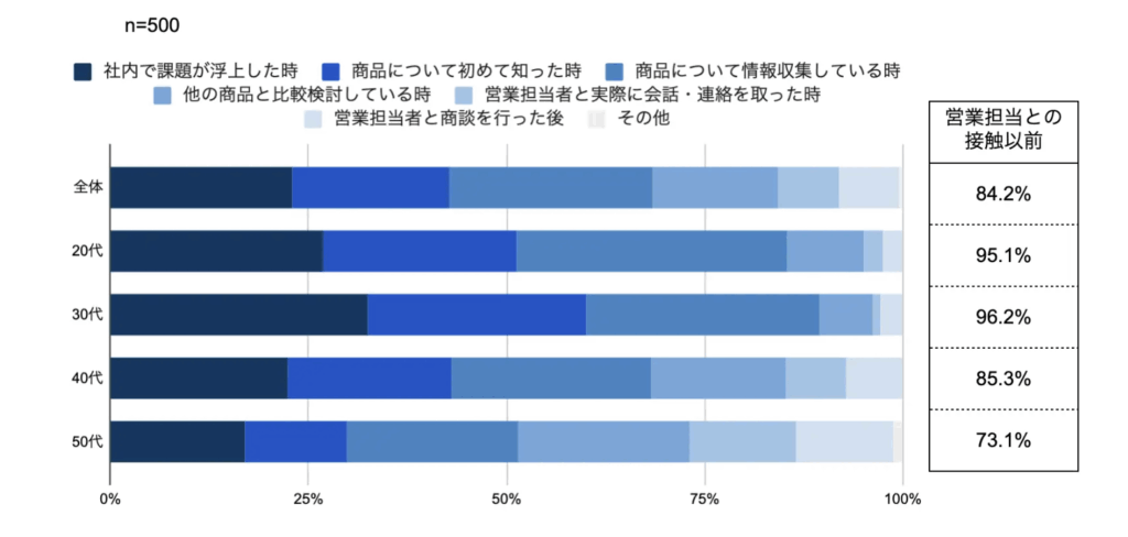 しかし、近年のBtoBにおける購買活動は明らかに長期化しています。担当者が自社に問い合わせをする時点で、すでに8割方の意思決定が終わっているというデータもあります。