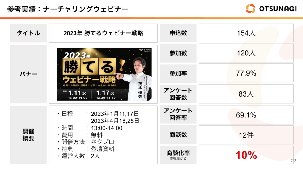 実際、私が「勝てるウェビナー戦略2023」という企画を作った際も、特定の相談者をイメージしながら構成した結果、過去最高の反応率を得ることができました。