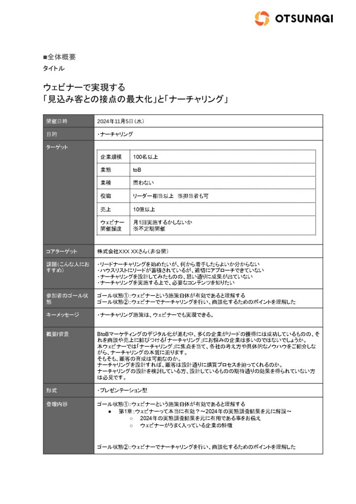 ウェビナー企画の作り方を踏襲した、OTSUNAGI特製の企画書テンプレートを無料でプレゼントいたします!