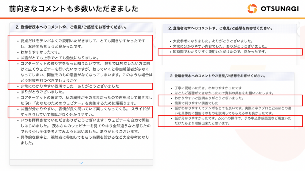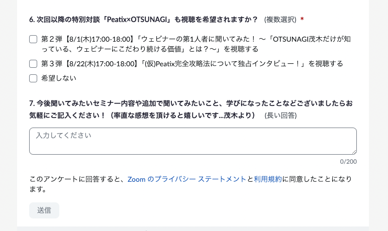 また、次回セミナーへの導線設計も重要です。アンケートで「次回も参加したいか」を尋ねたり、配信画面から直接予約できるようにするなど、視聴者が行動しやすい工夫を施しましょう。