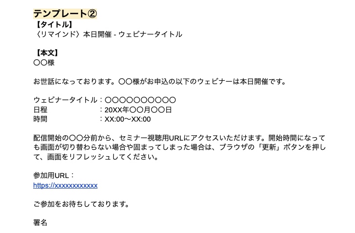 セミナーの形式別リマインドメール文例